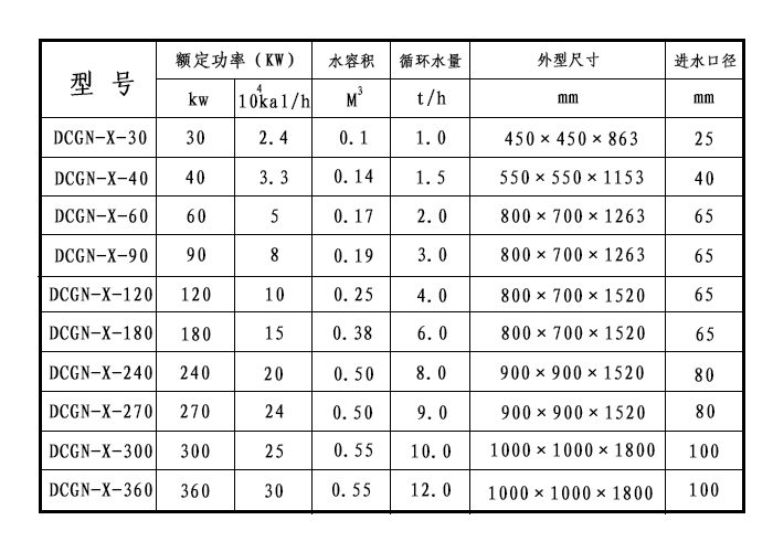 DCGN-X系列洗浴專用爐基本參數(shù)表